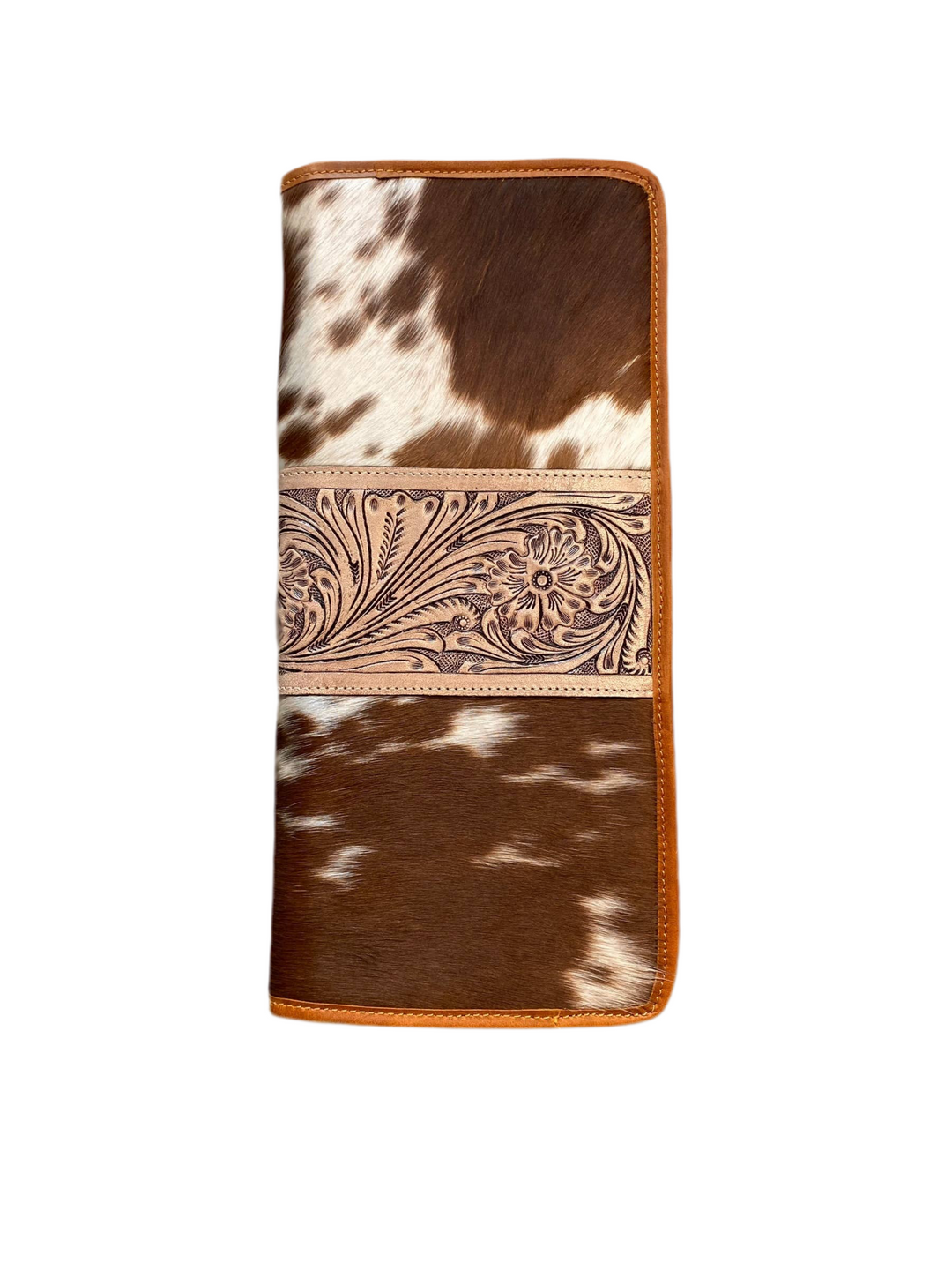 Tan Cowhide & Tooled Leather Jewelry Wallet