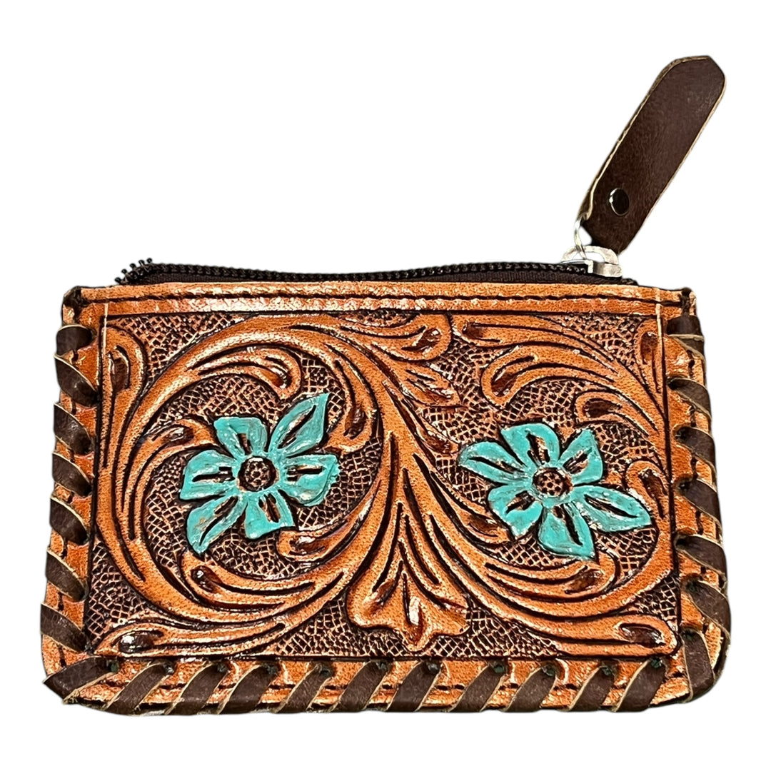 Tooled Leather, Flower Design & Cowhide Coin Pouch
