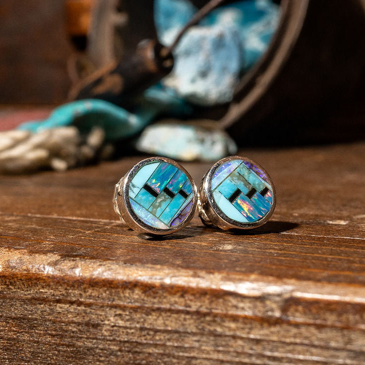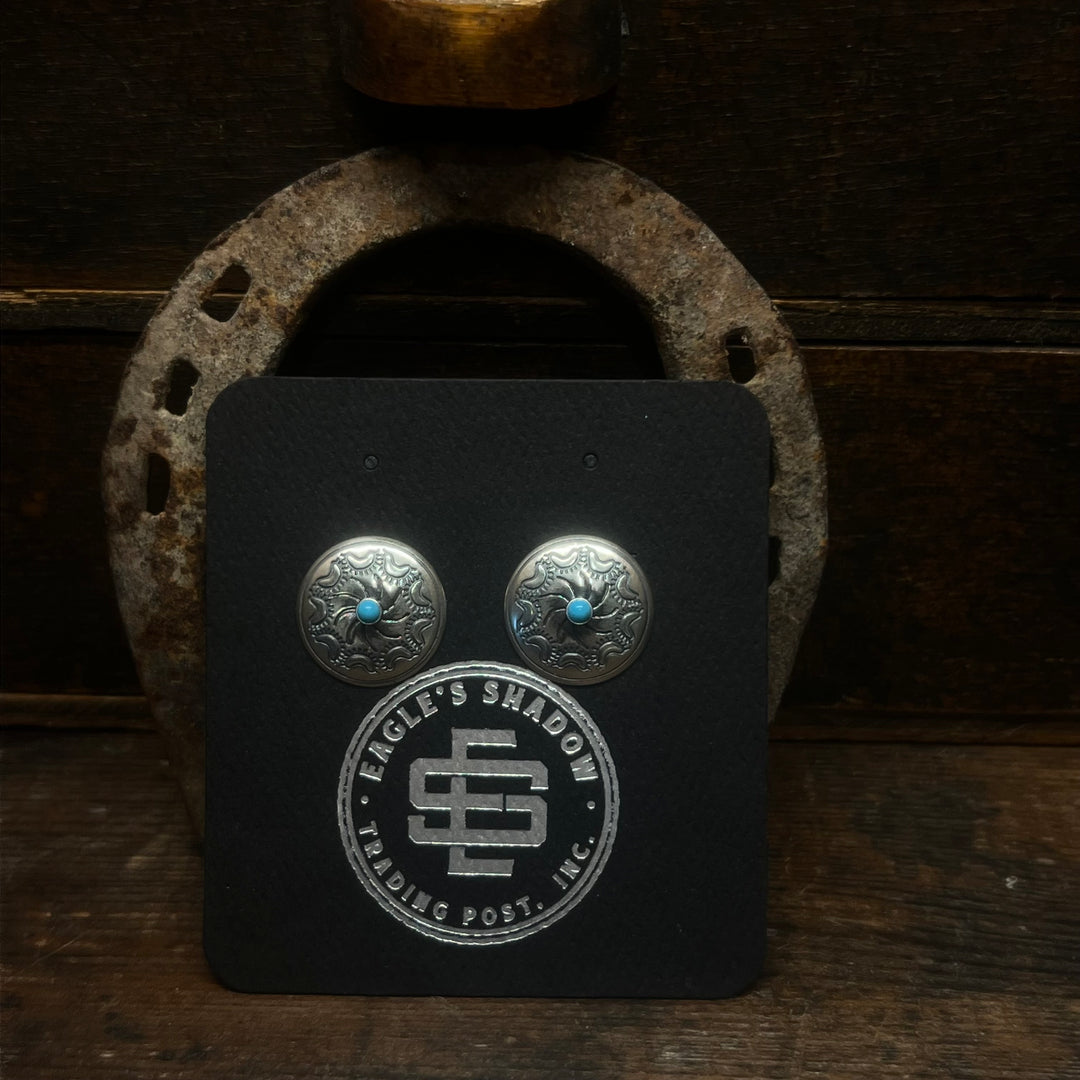 Stamped Sterling Silver & Turquoise Round Studs