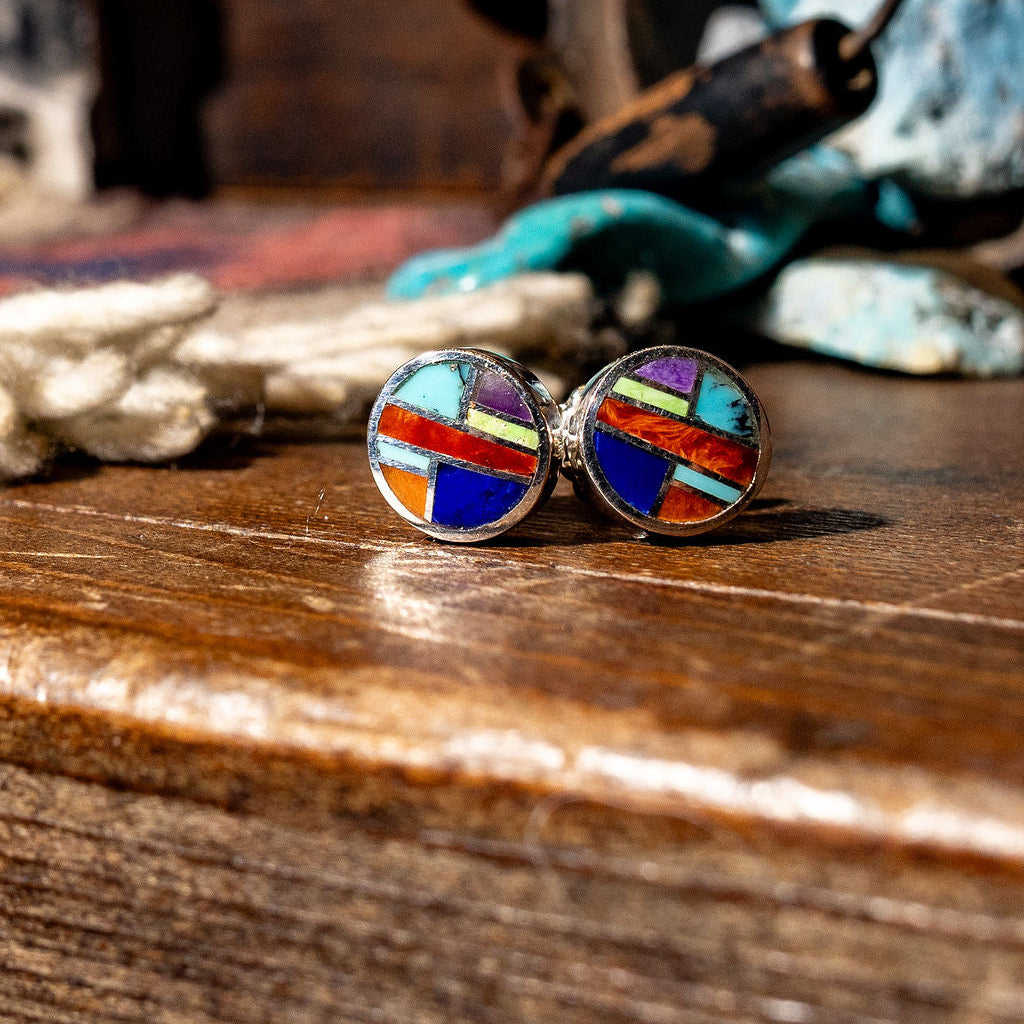Vintage Zuni Multicolor Inlay Hoops