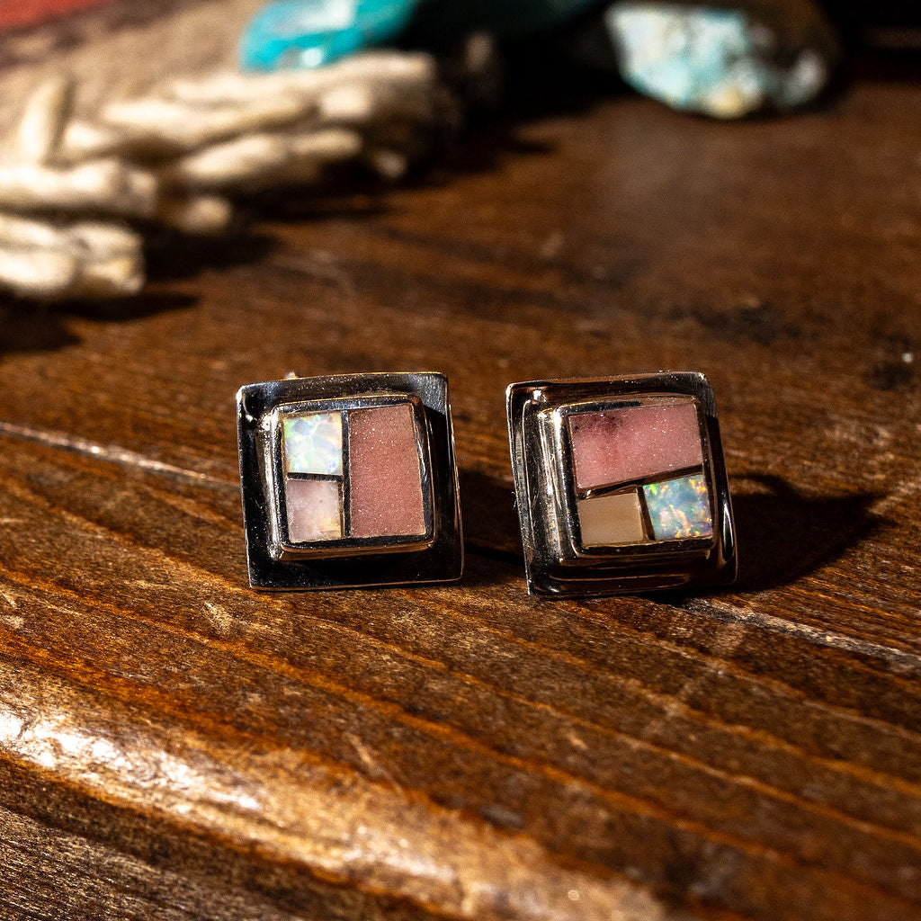 Stardust Inlaid Sterling Silver Post Earrings
