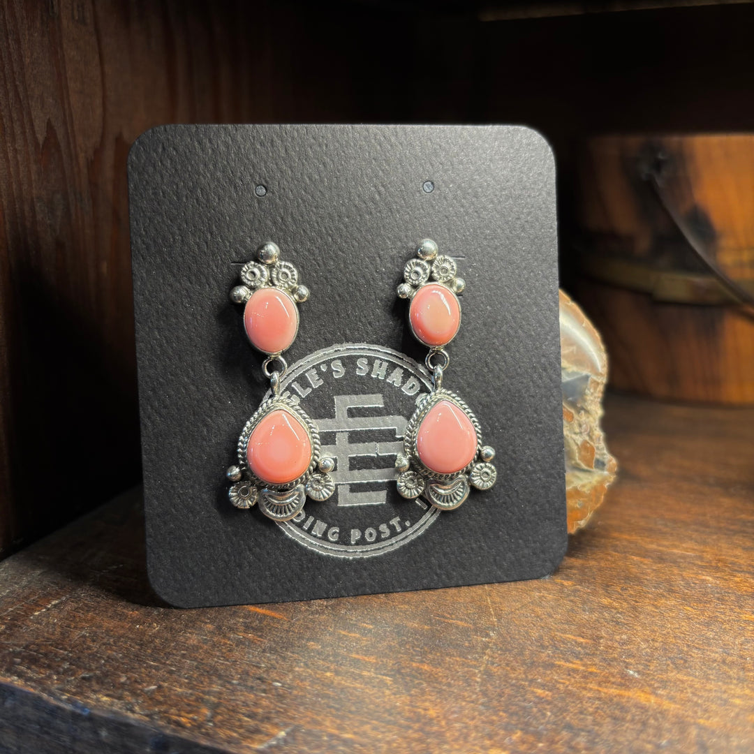 Pink Conch and Sterling Silver Dangle Earrings