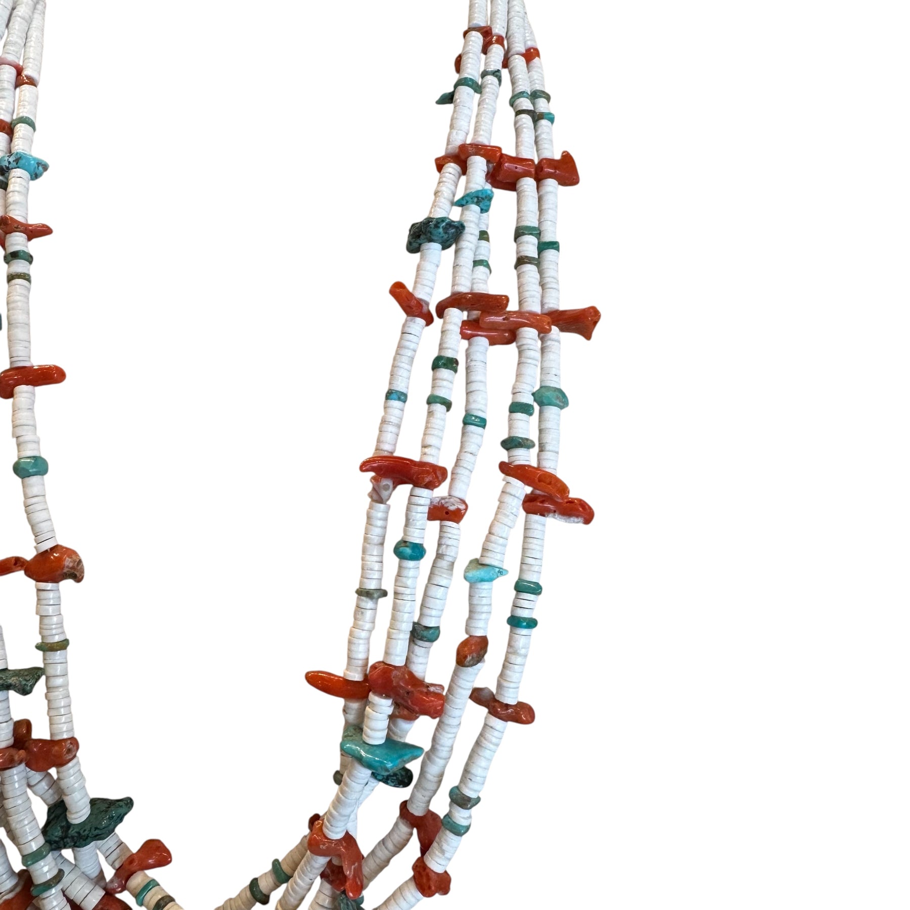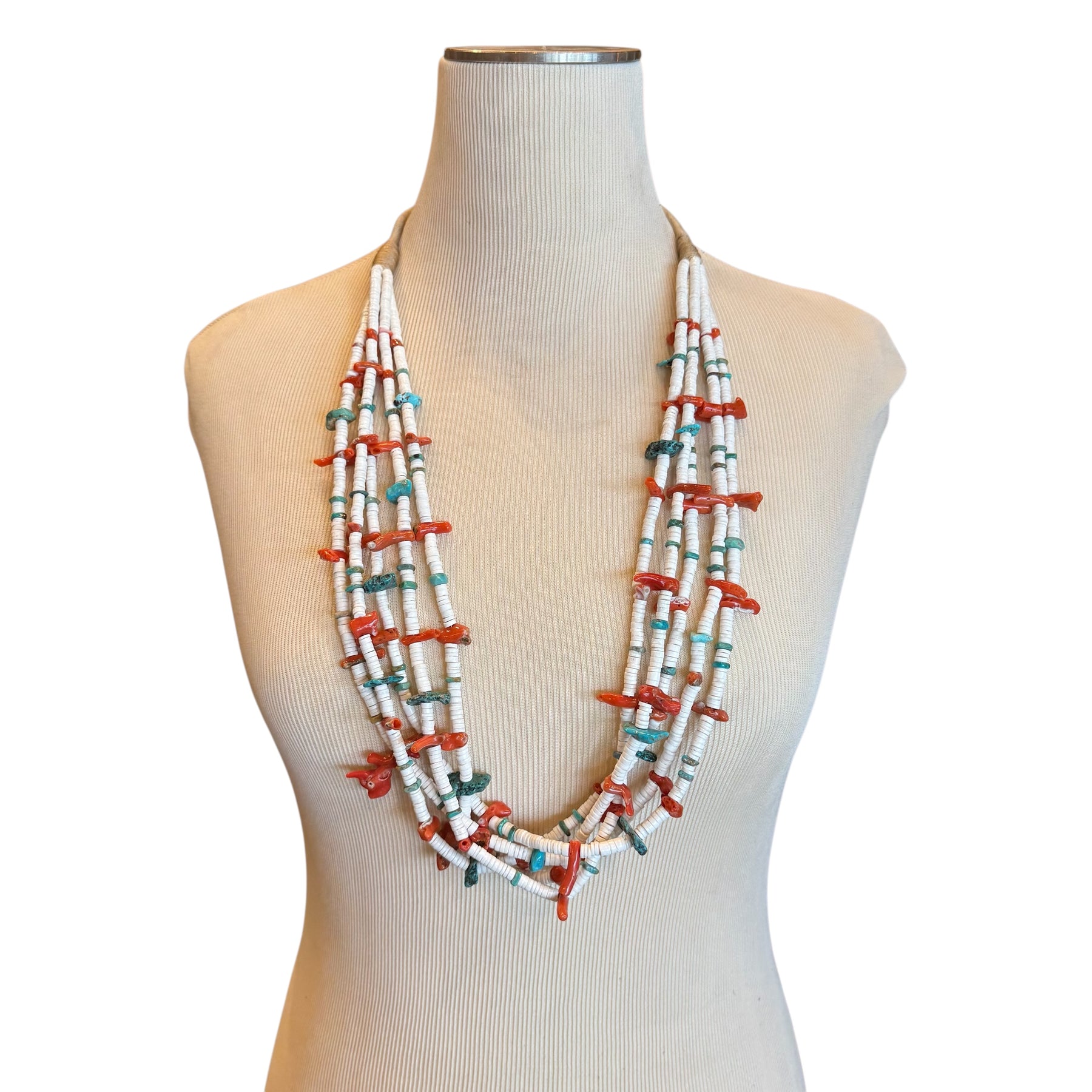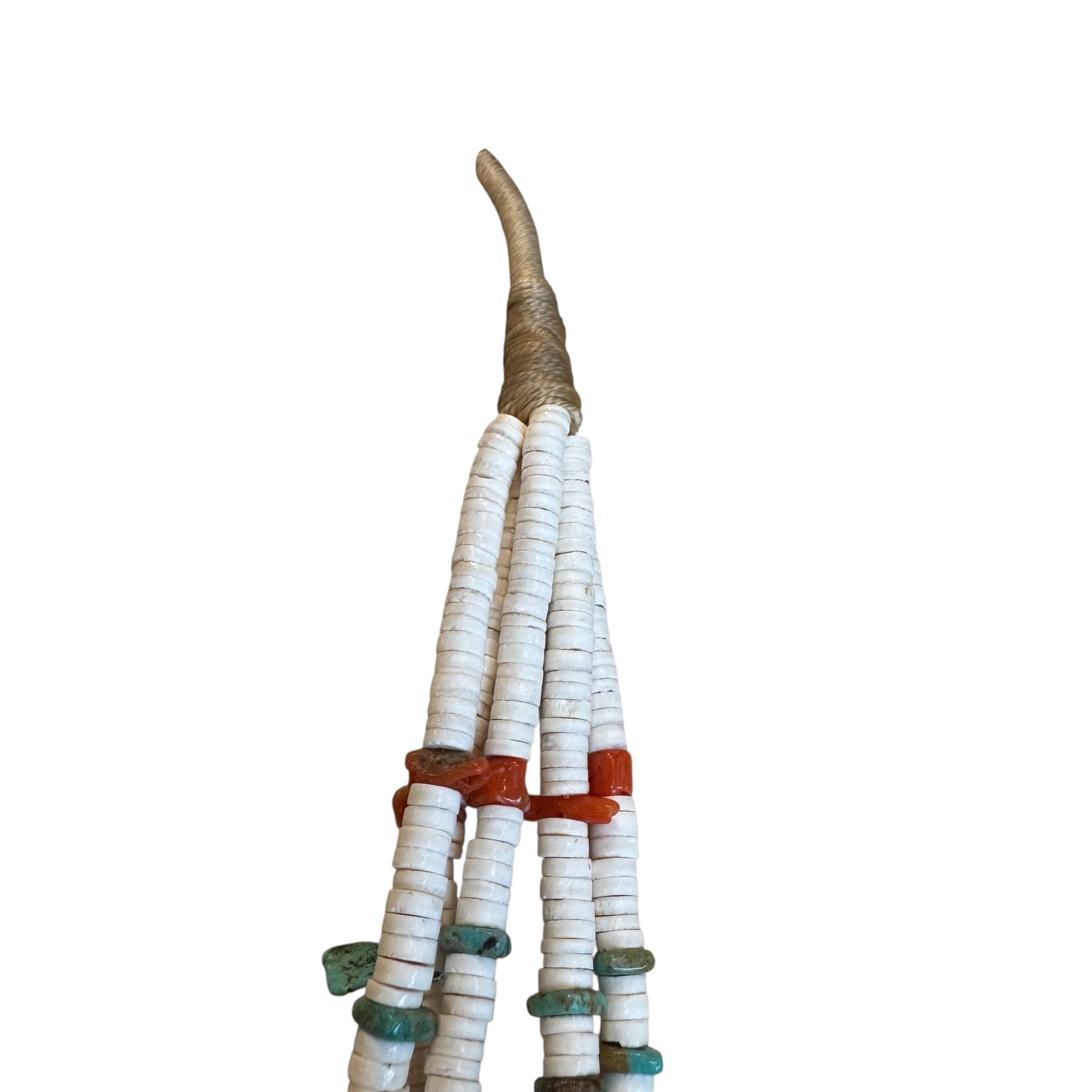 - Materials: White Heshi shell, Coral, Turquoise Heshi shell, Yucca Plant- tradition wrap