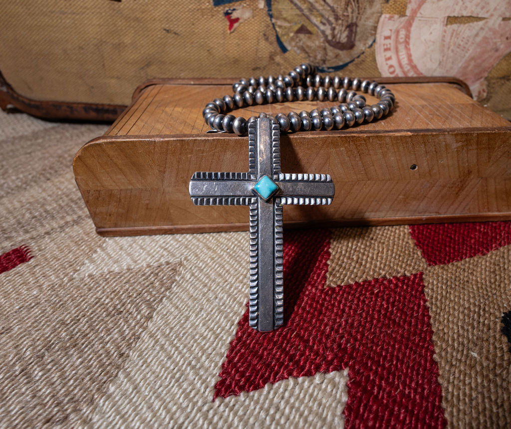 Handmade Sterling Cross Pendant with Turquoise