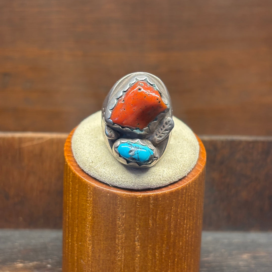 Arizona Turquoise and Mediterranean Coral Leaf Vintage Ring
