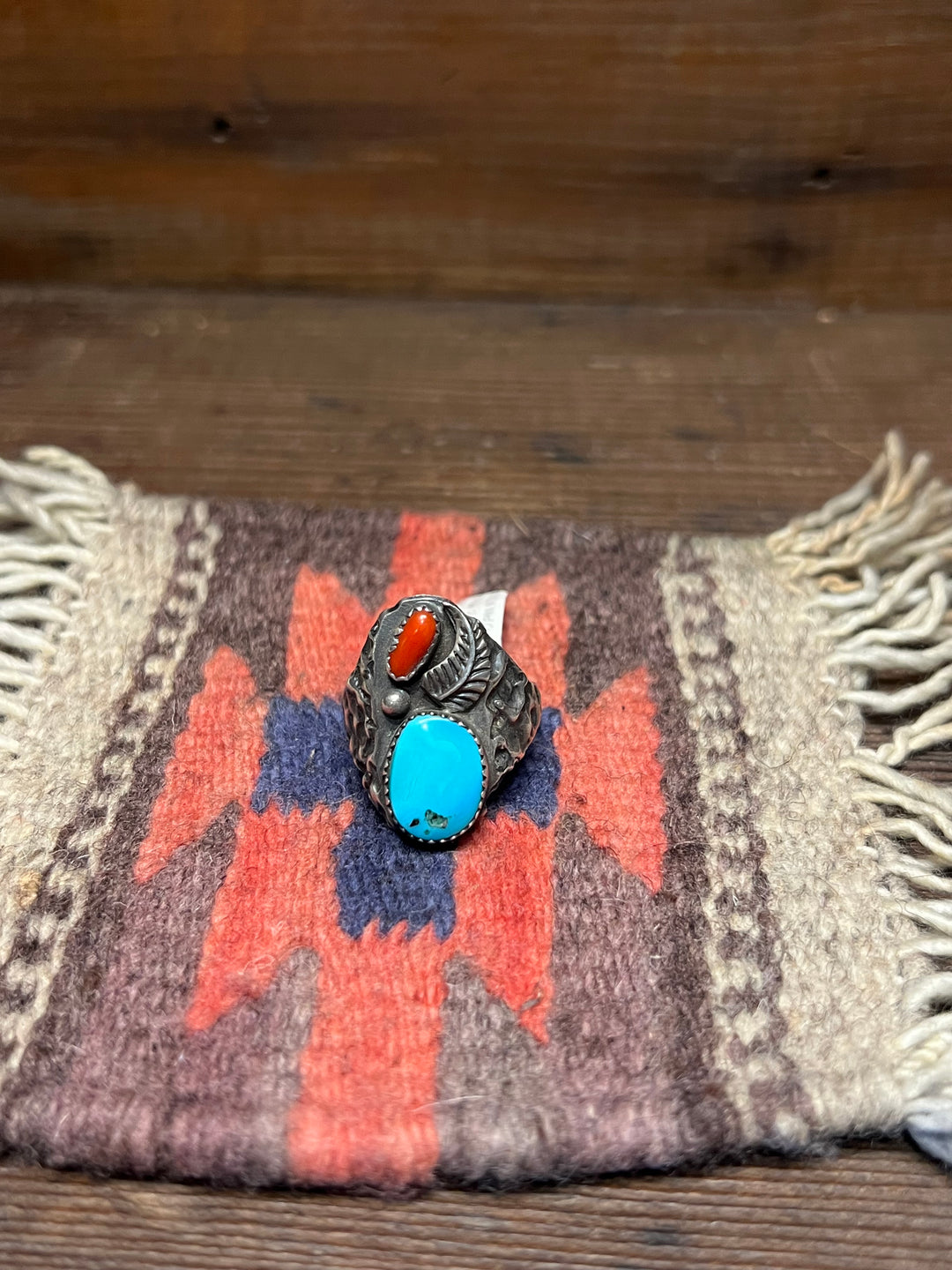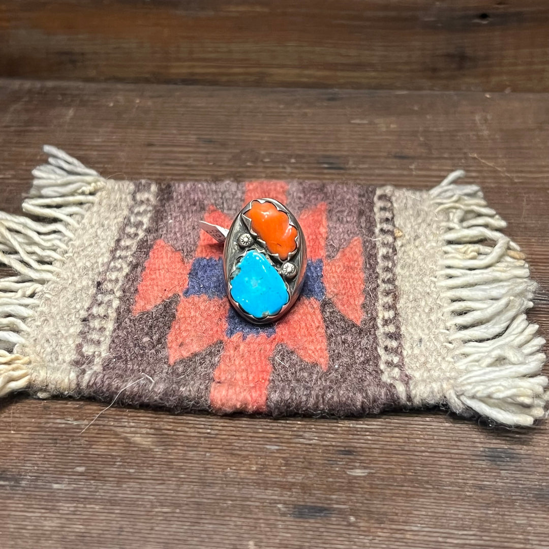 Turquoise Mediterranean Coral Vintage Navajo 1960's Ring