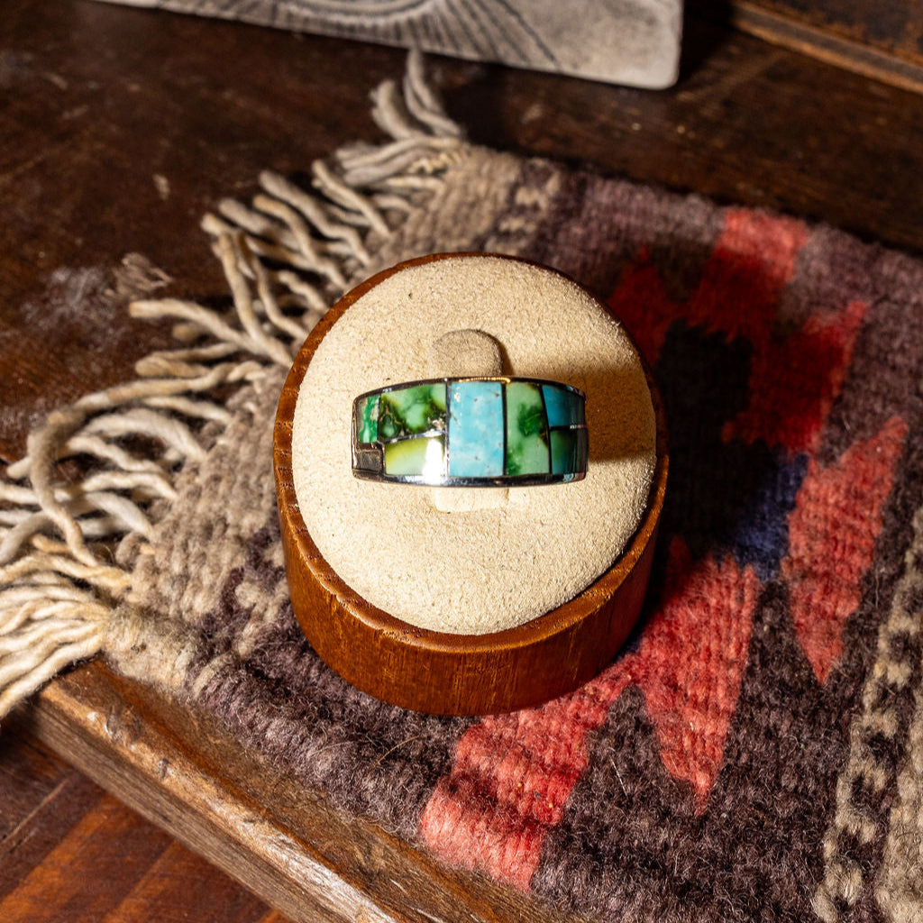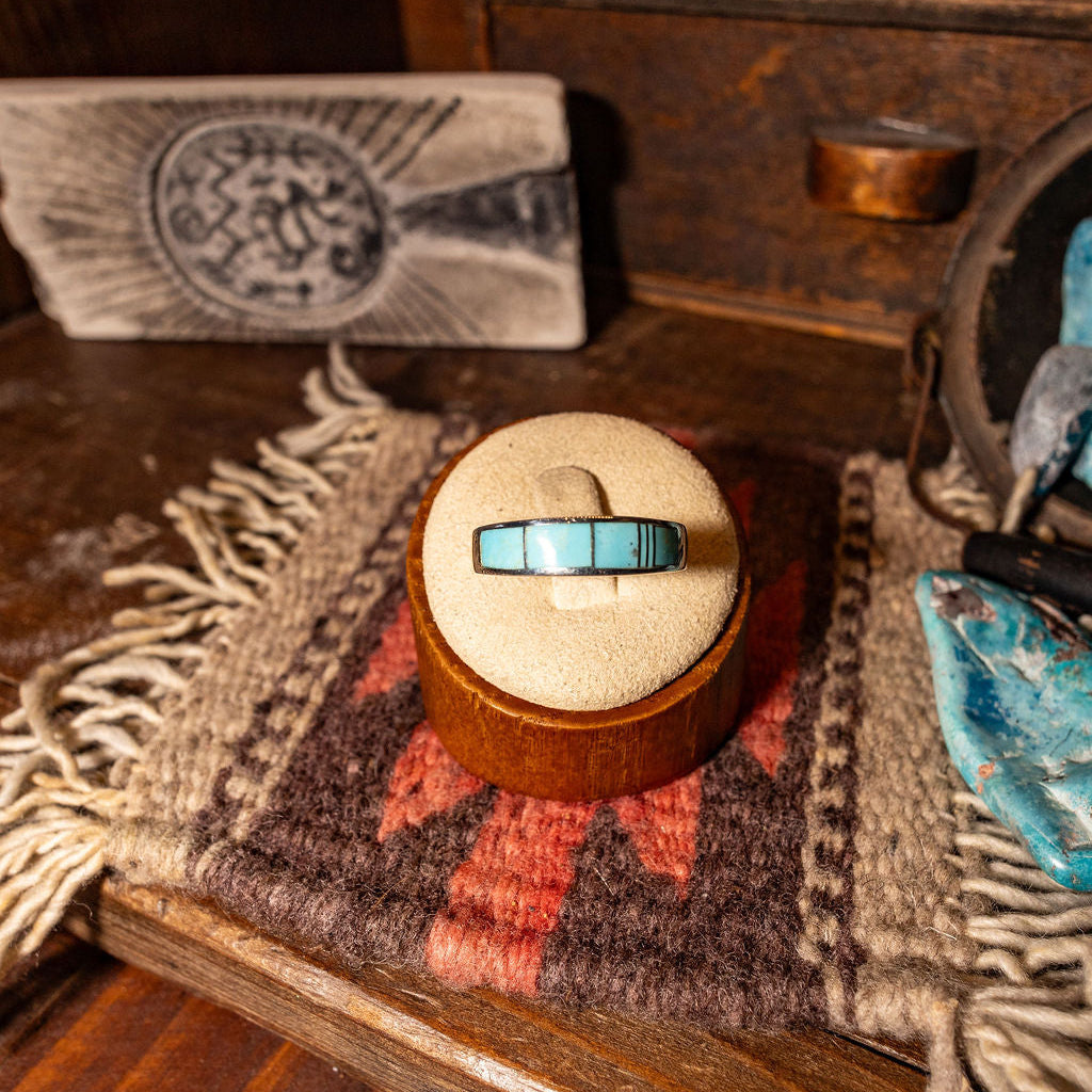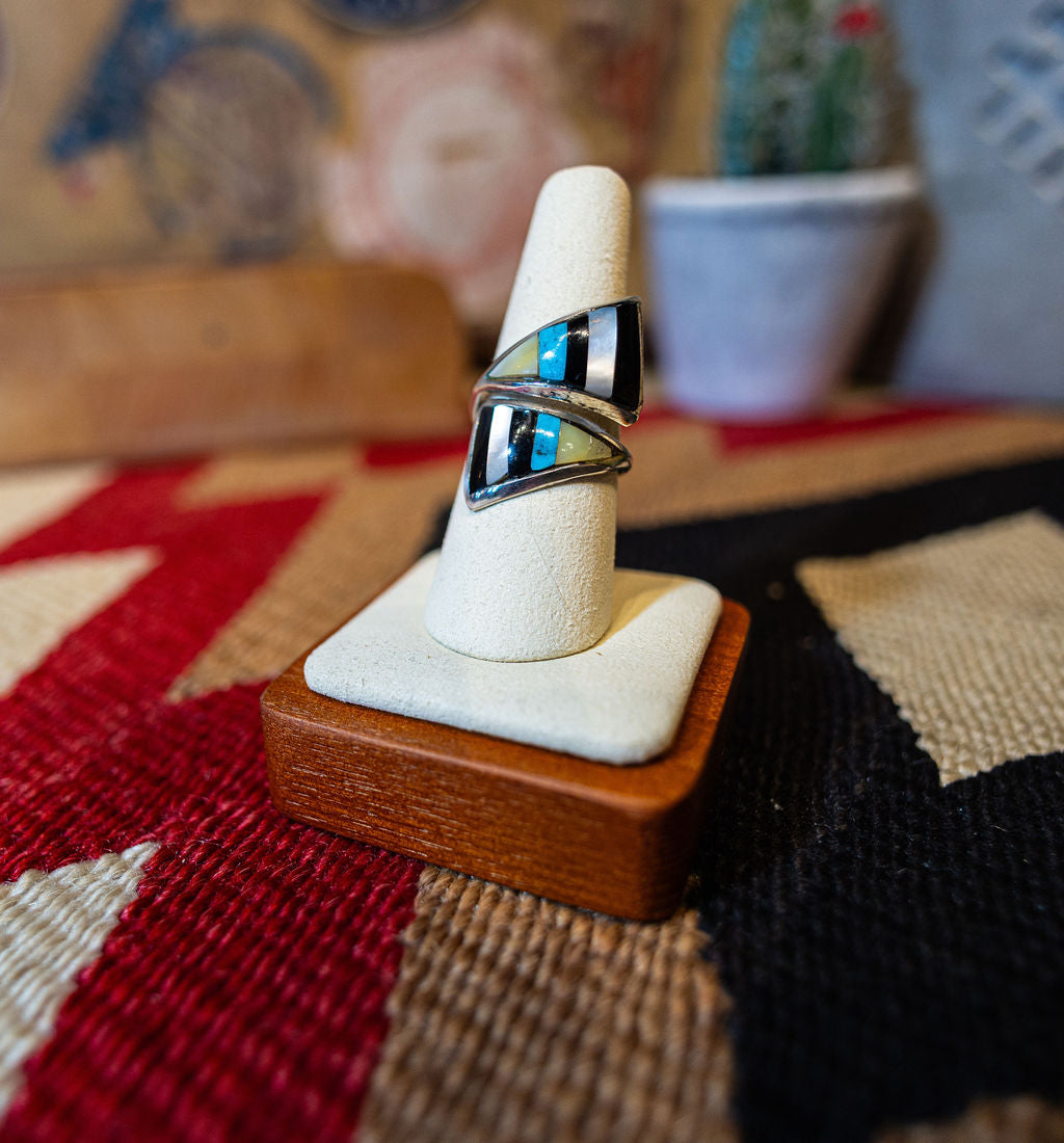Vintage Zuni Turquoise & Jet Wrap Inlay Ring
