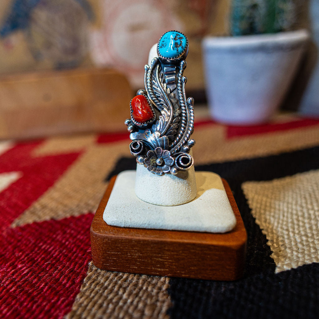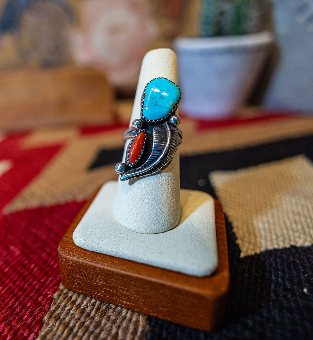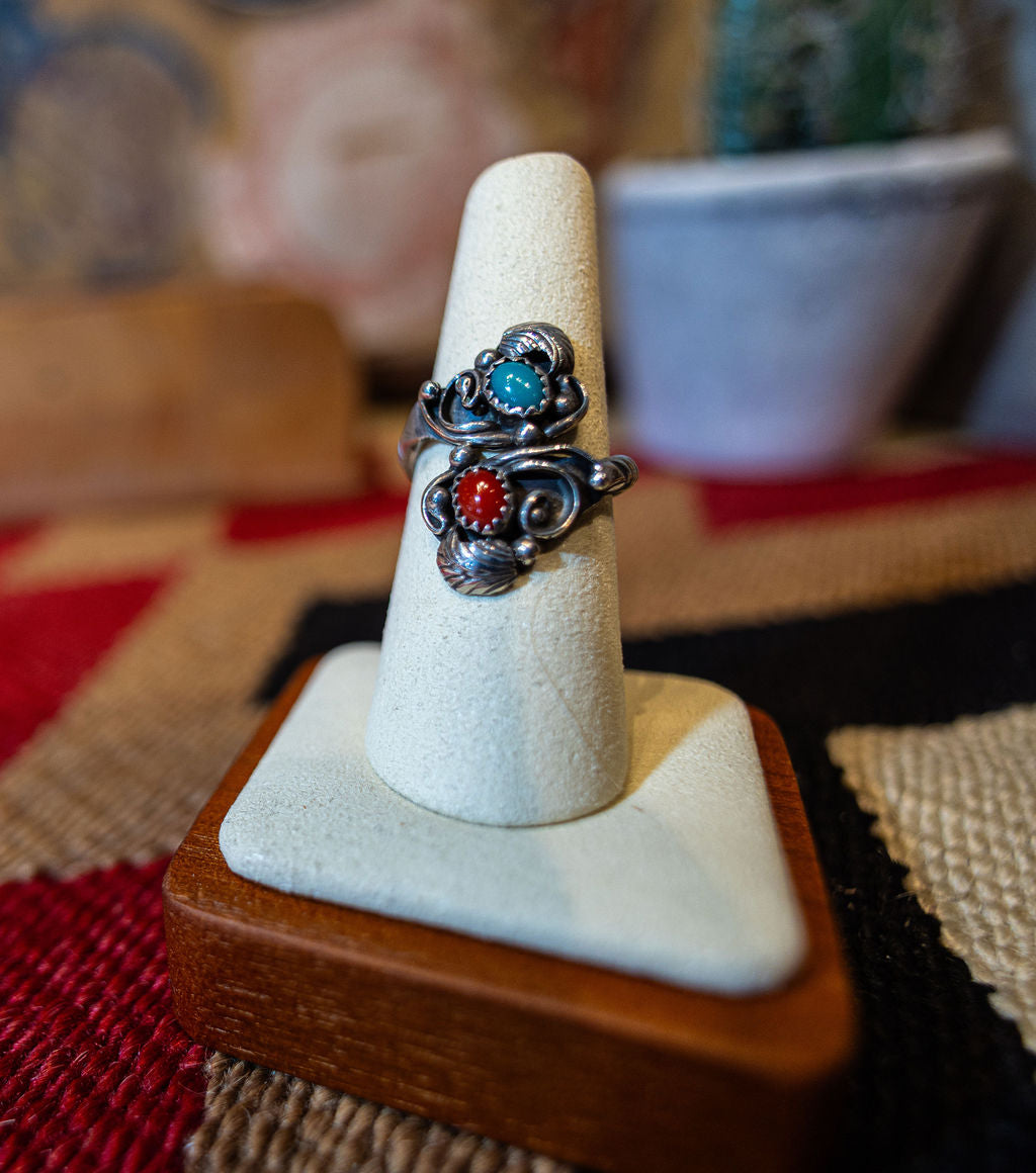 Vintage Zuni Turquoise & Jet Wrap Inlay Ring