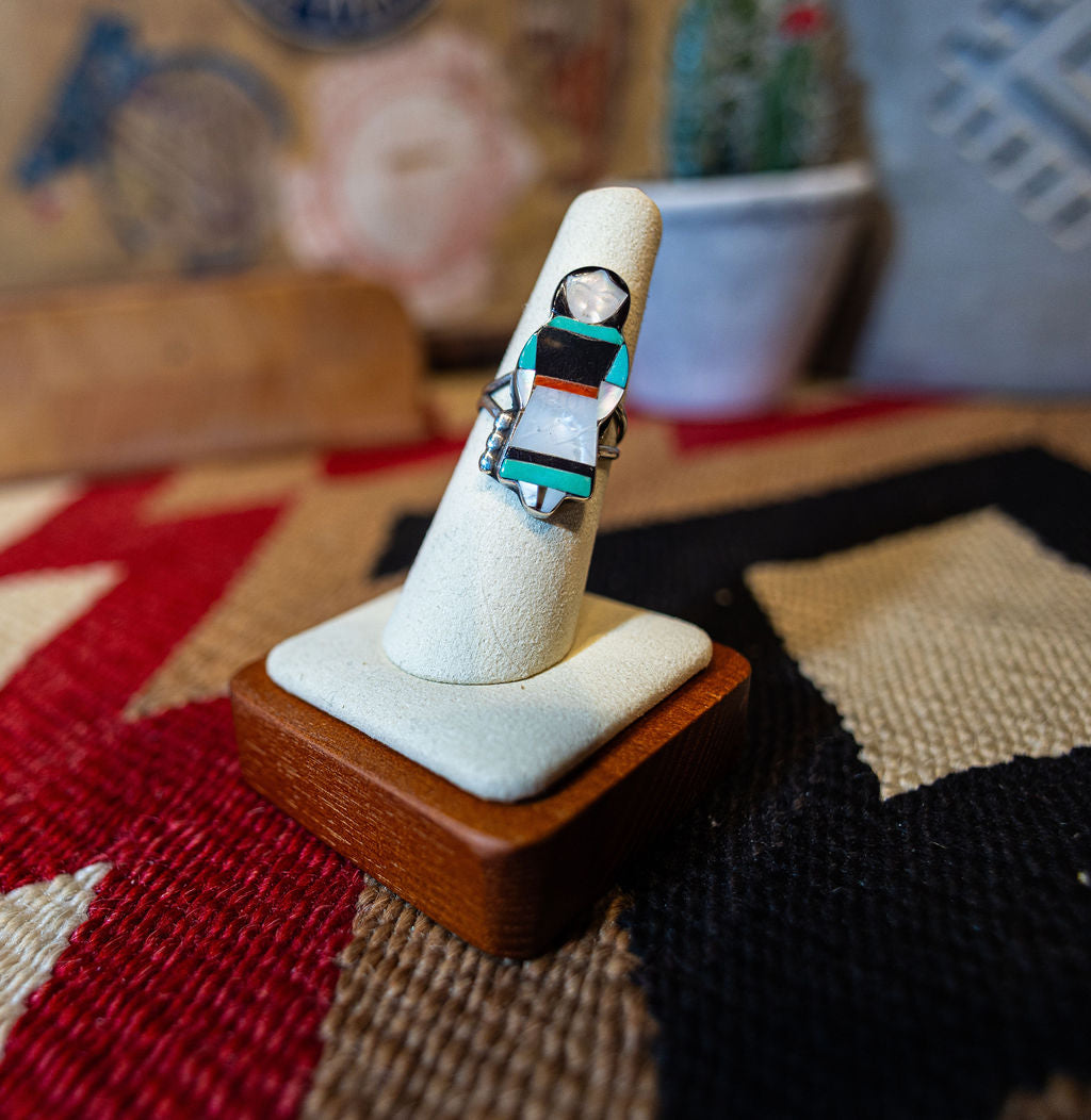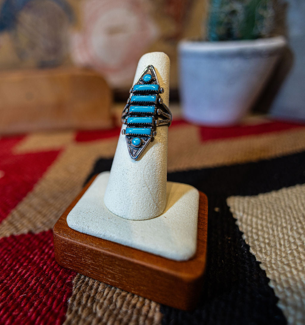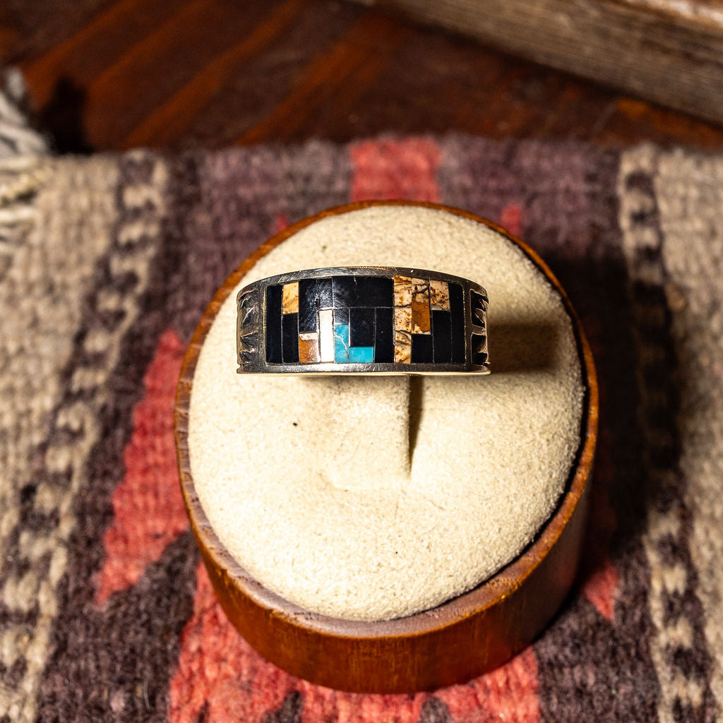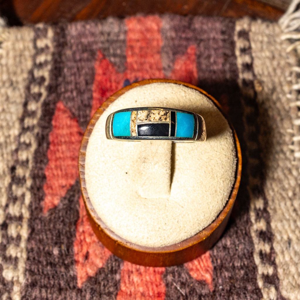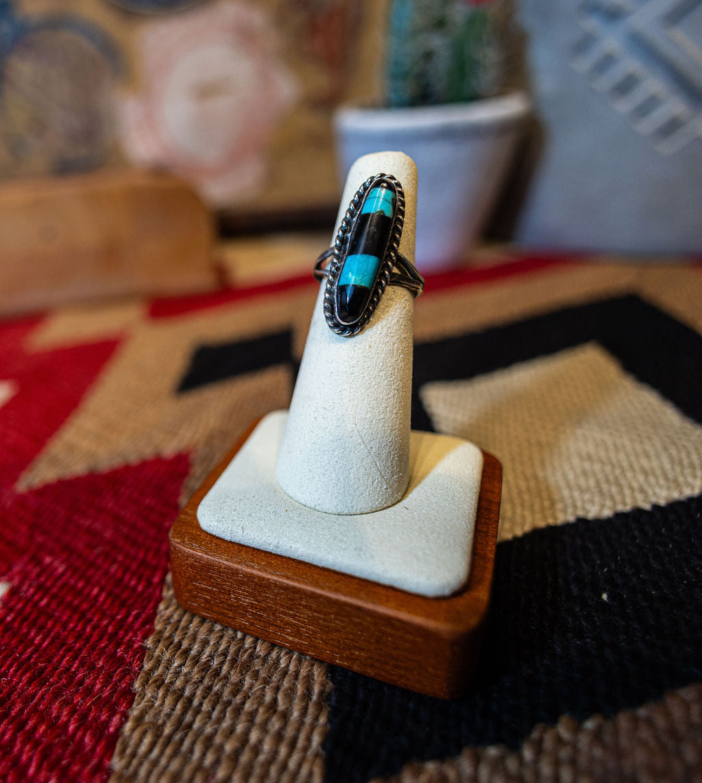 Vintage Zuni Turquoise & Jet Inlay Ring