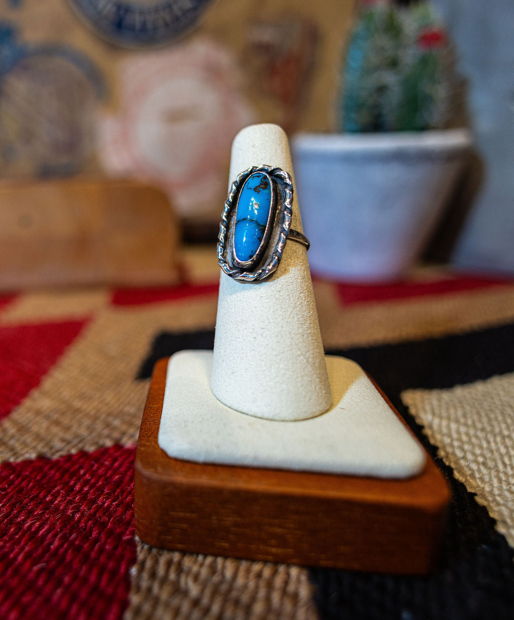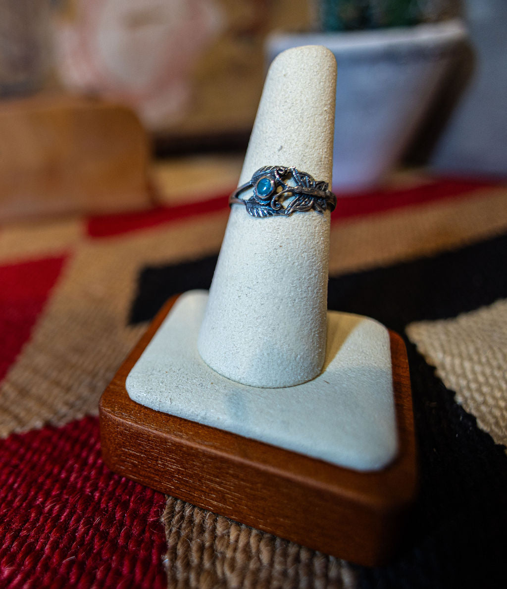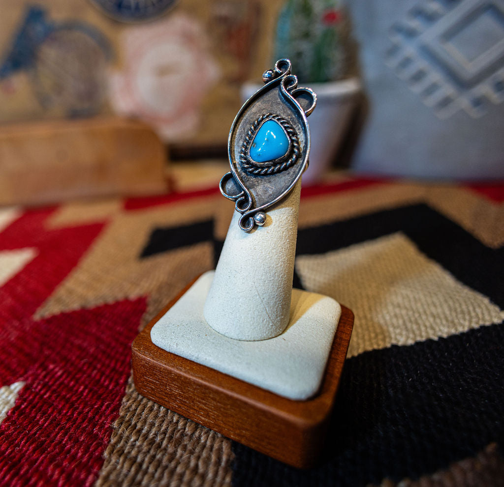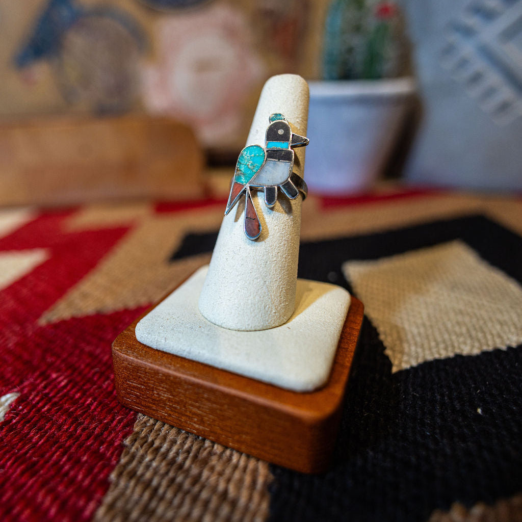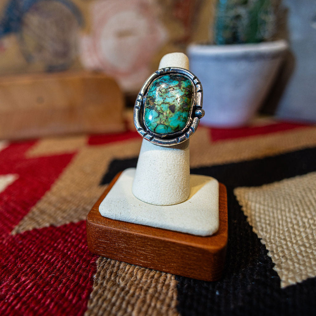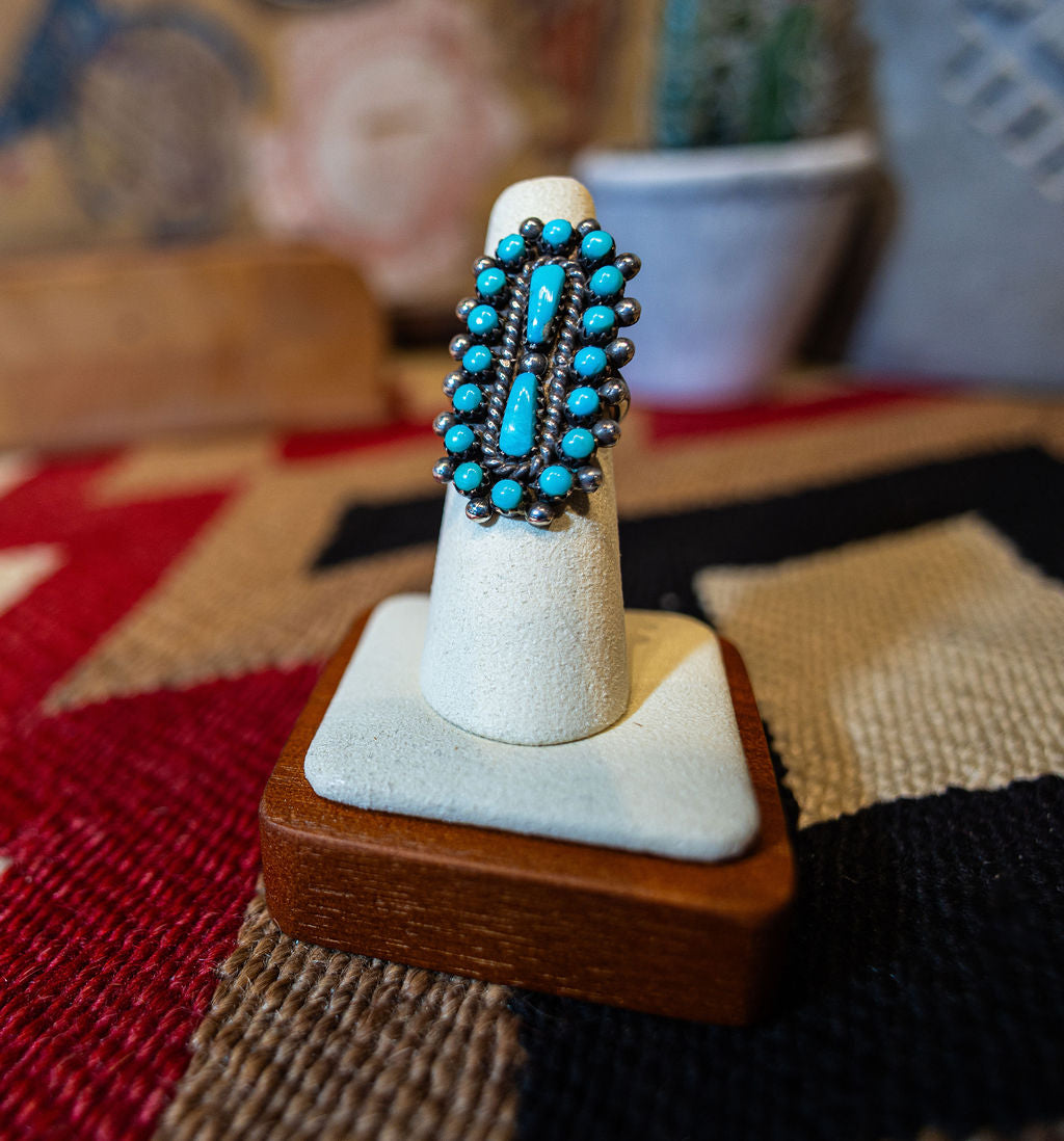 Vintage Zuni Turquoise & Jet Inlay Ring