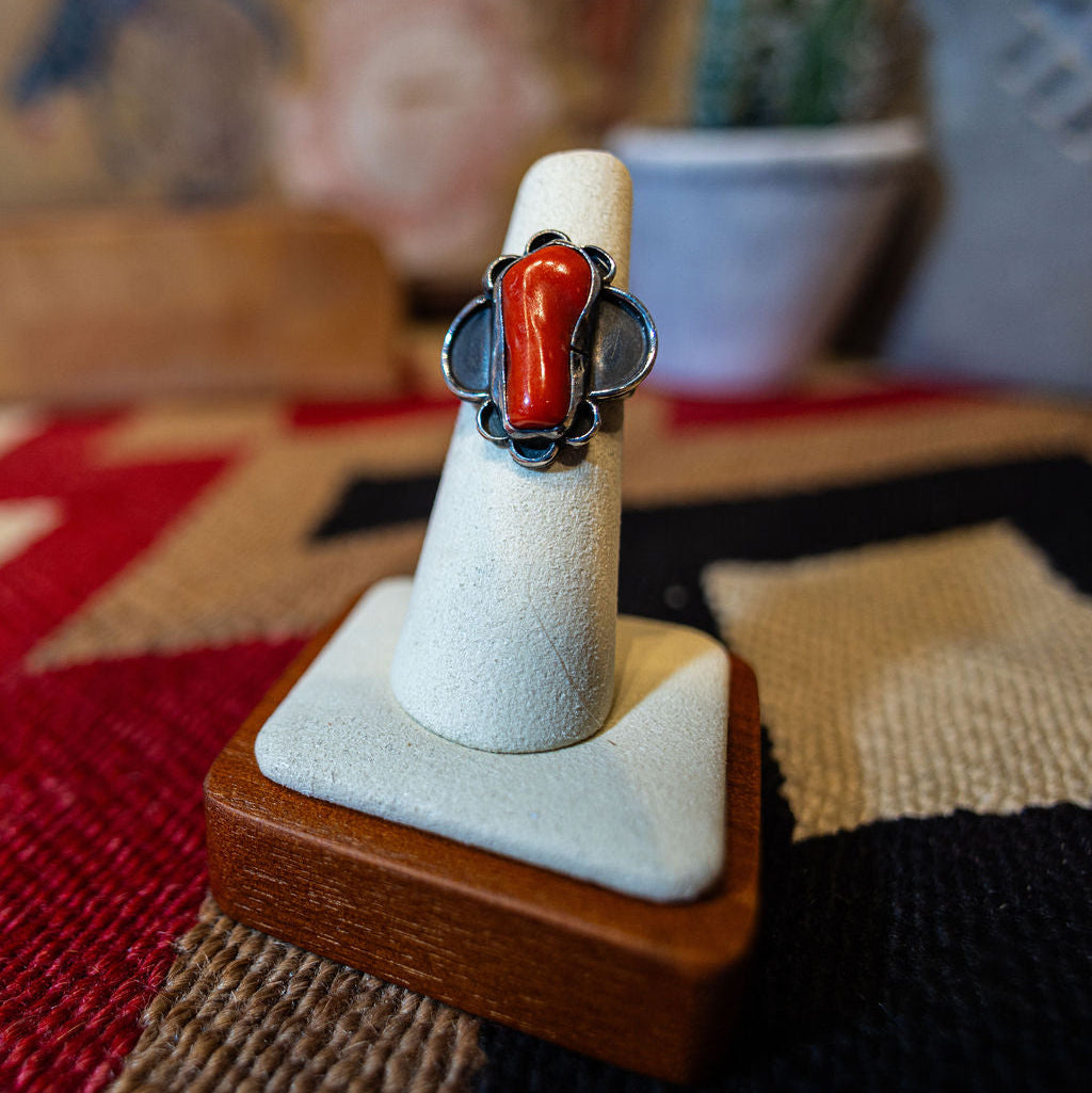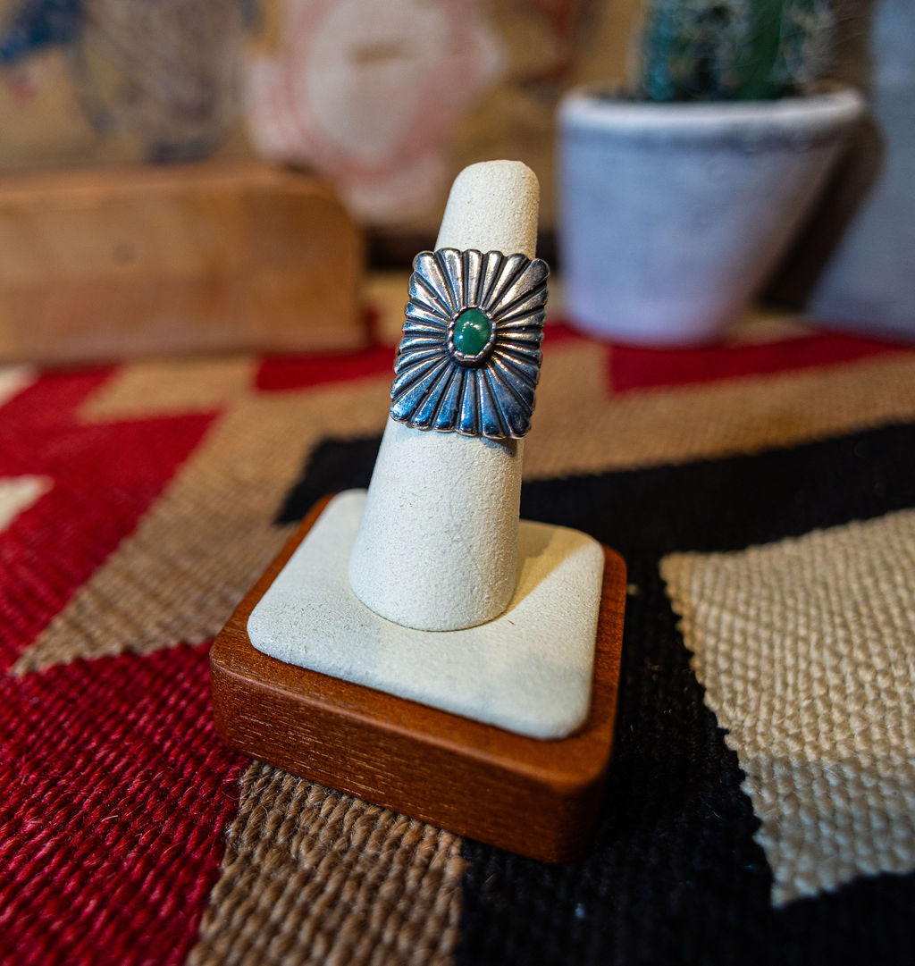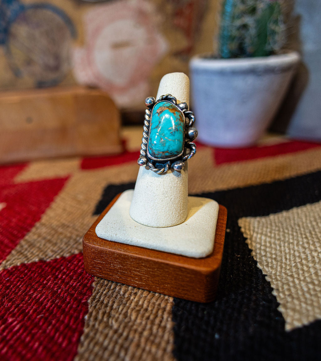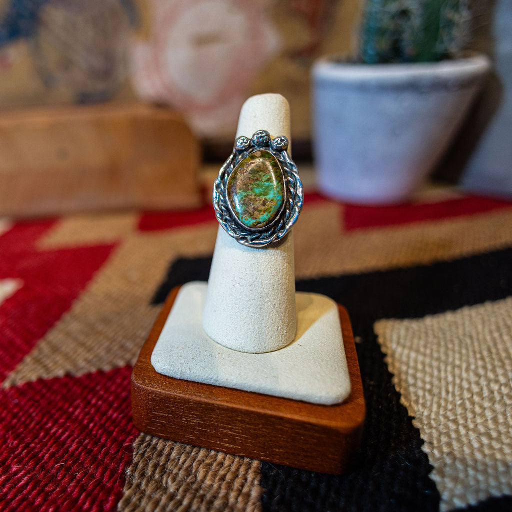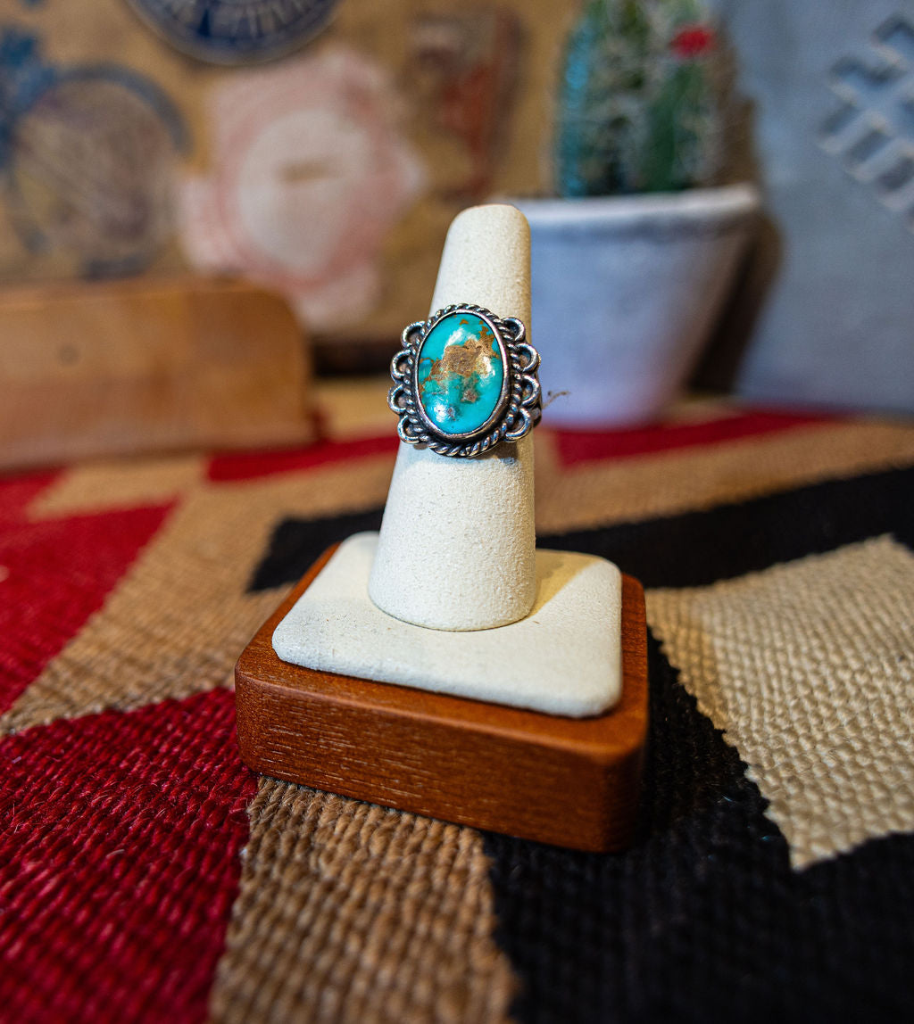 Vintage Zuni Turquoise & Jet Inlay Ring