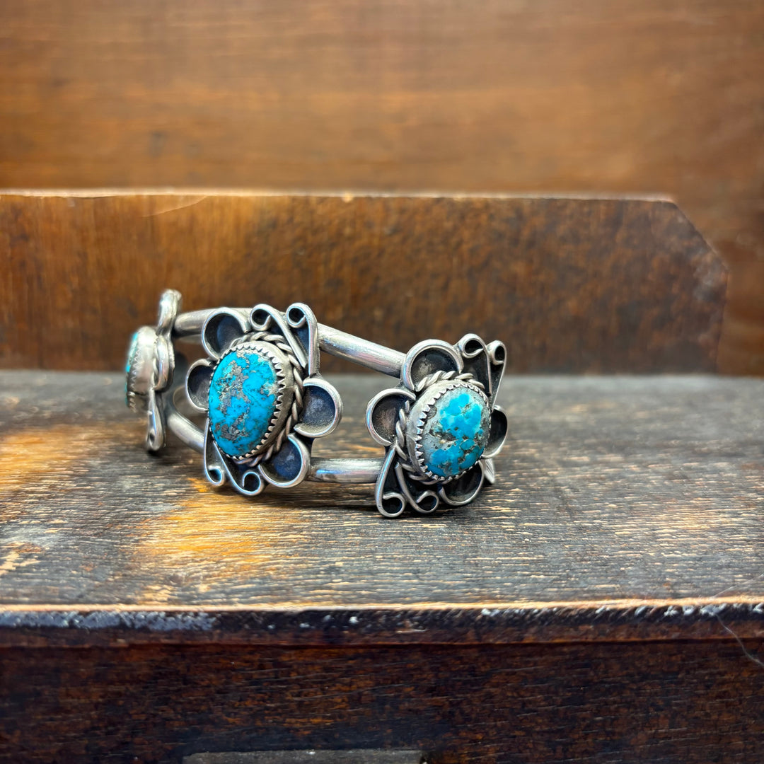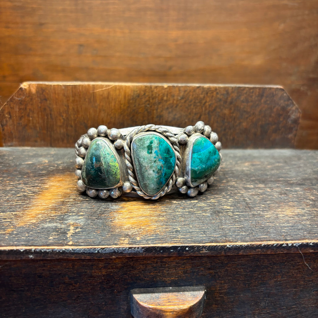 Vintage Arizona Bisbee Azurite 3 Stone Row Cuff