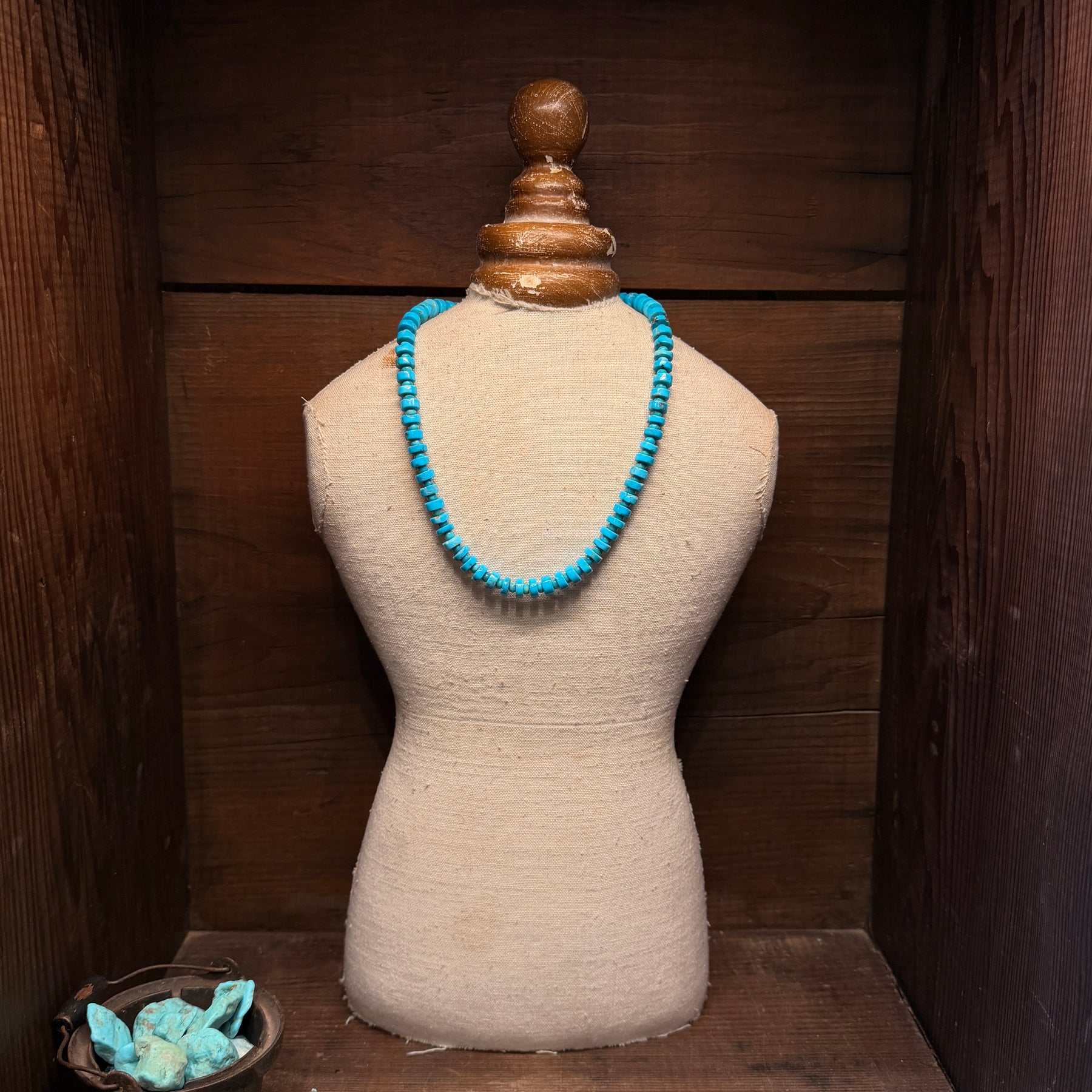 This versatile necklace features a mix of turquoise disc and round beads, ranging in size from approximately 4–8 mm, creating subtle texture and visual interest throughout the strand. The bright turquoise tones make this an easy, everyday piece that layers beautifully with other silver and turquoise necklaces.