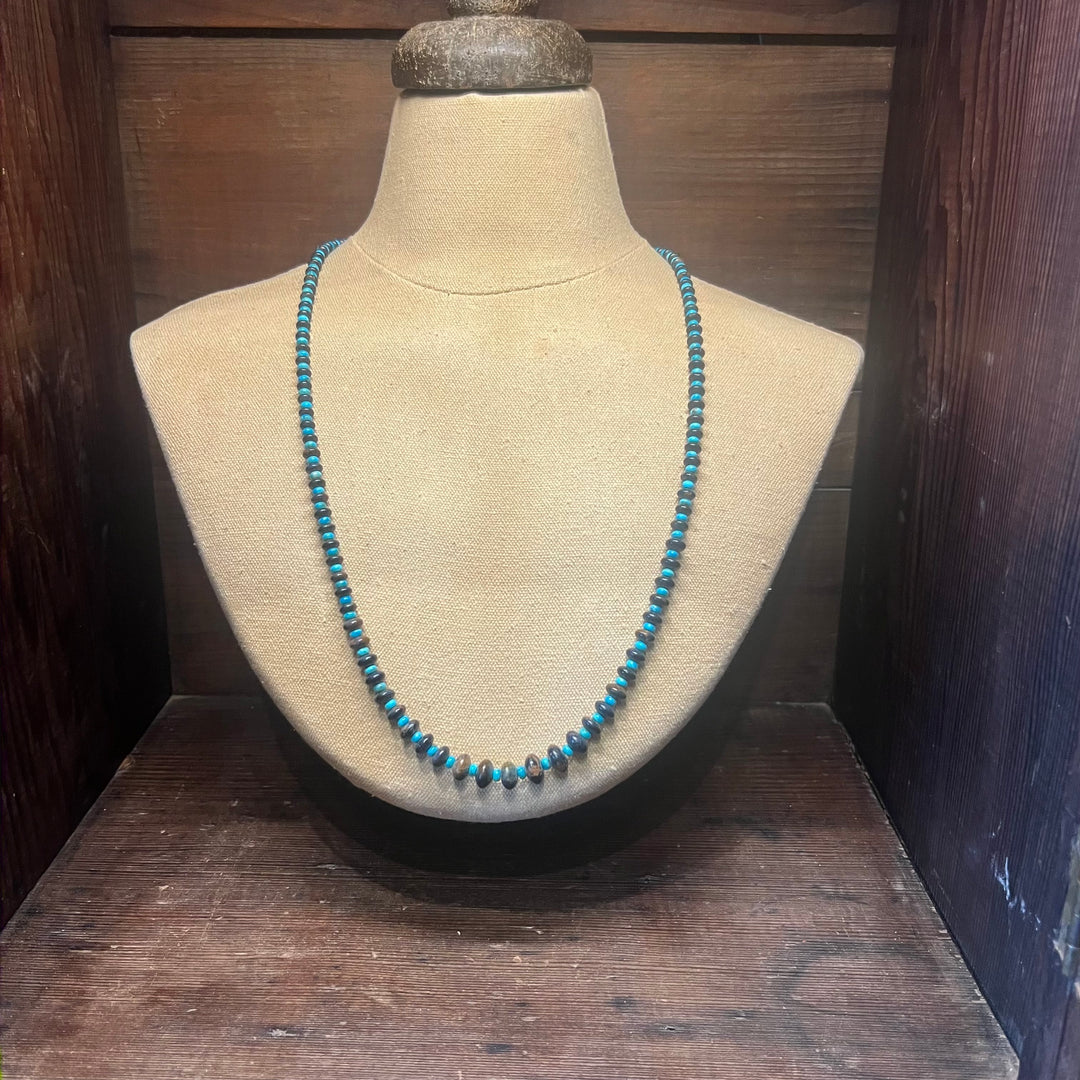 Turquoise and 6mm Navajo Pearl Multi Strand 28” Nacklace