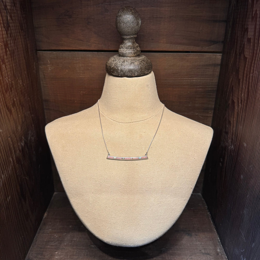 Peruvian Opal Stone Thin Slab Inlay Necklace 18"