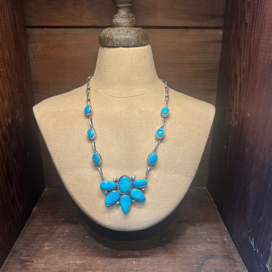 Campitos Turquoise Large Nugget 8mm Navajo Pearl Necklace 18”