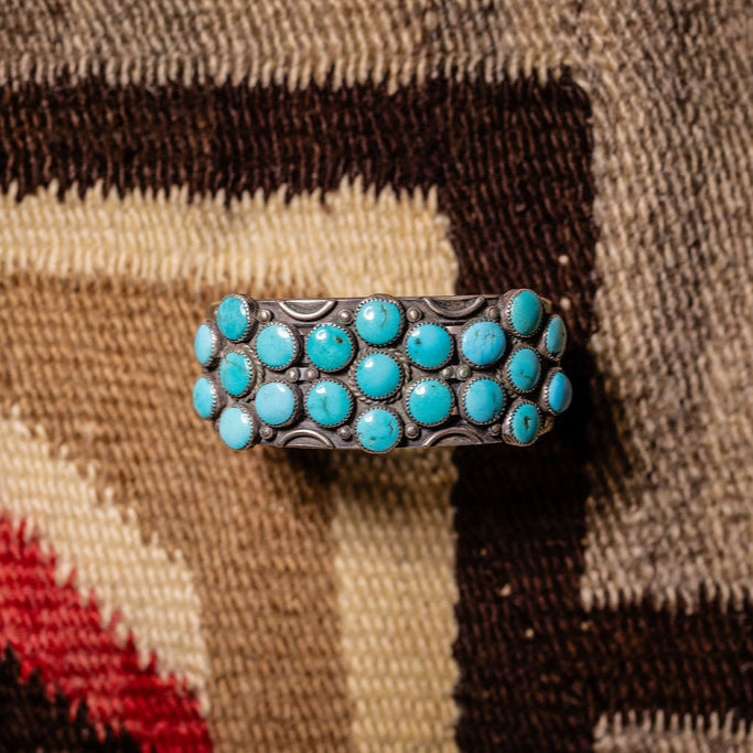 • Turquoise & Natural Stones – Early turquoise cabochons and other natural stones sourced from historic mines, often left in organic forms to preserve authenticity.