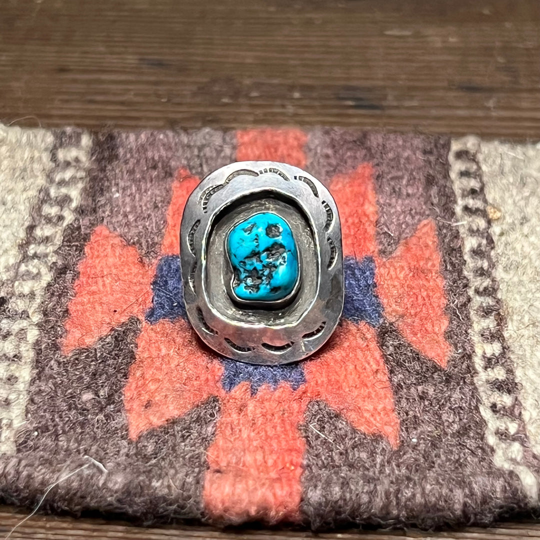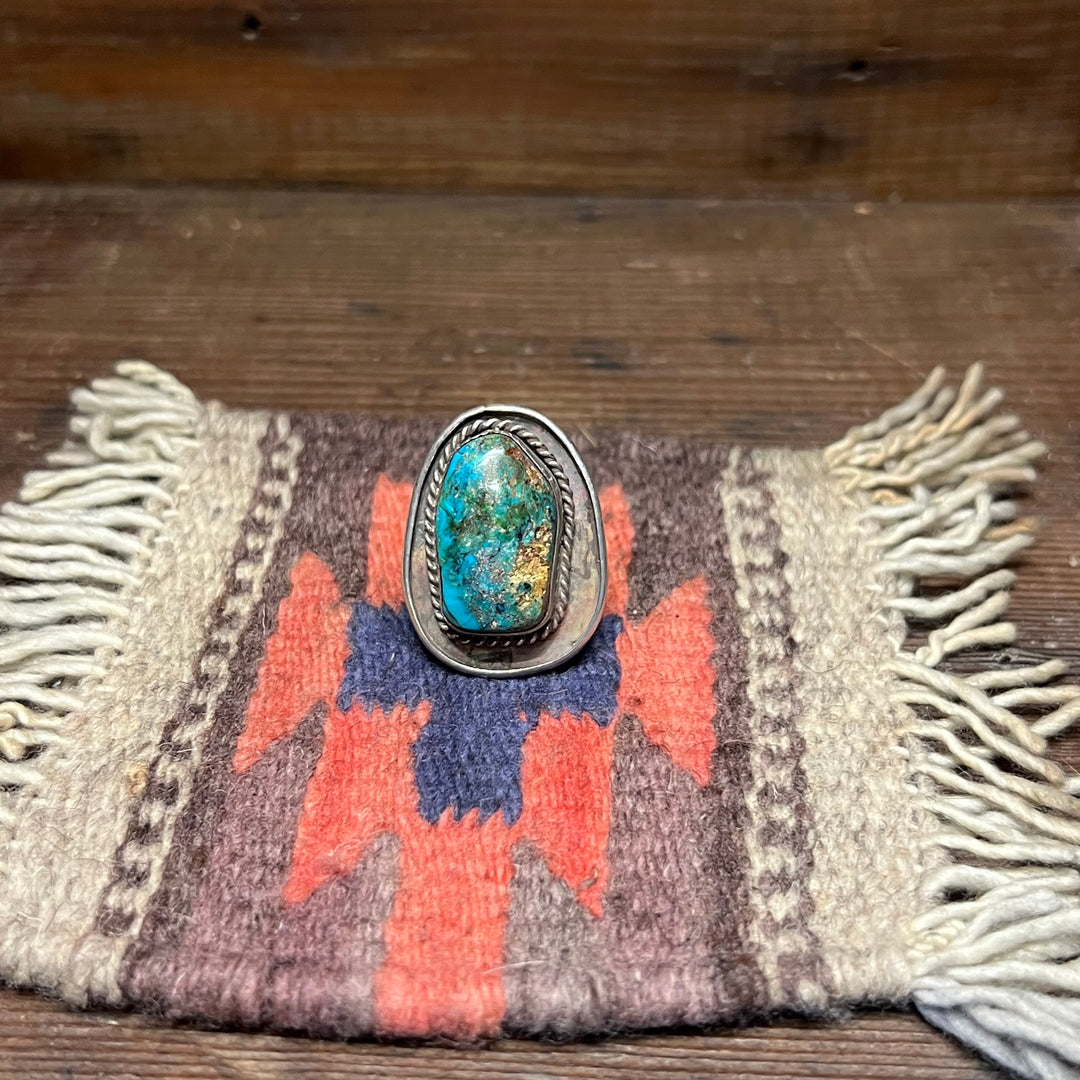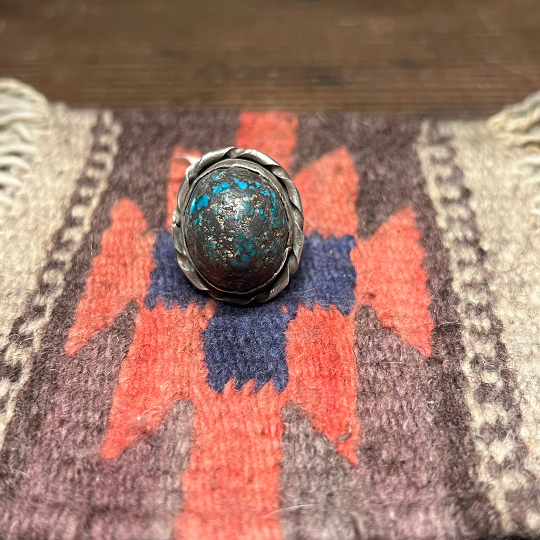 High Dome Spiderweb Nevada Turquoise Vintage 1970's Ring