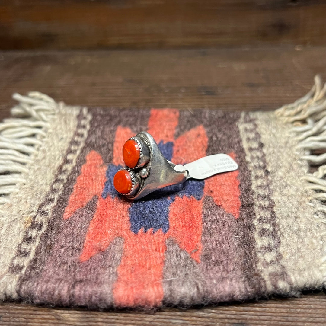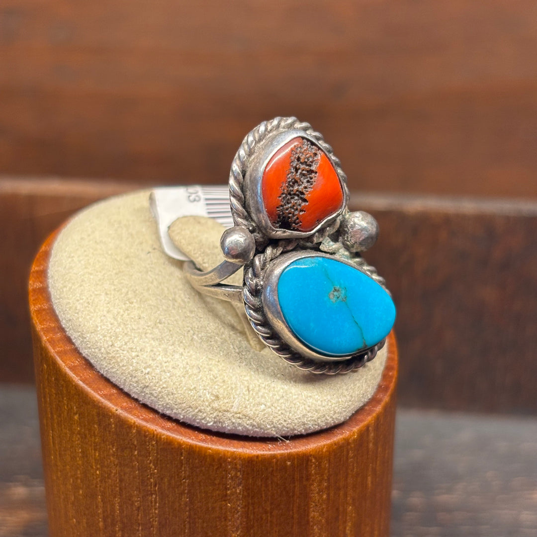 Coral and Arizona Turquoise Leaf Vintage 1970's Ring