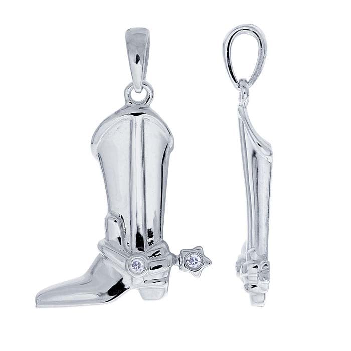 This sterling silver pendant features a cowboy boot and spur, each set with one round white CZ. It looks great on its own or in combination with other charms and components.